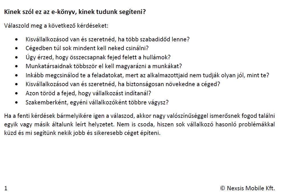 Ebben az e-könyvben sorra vesszük a lehetőségeket és az előnyöket, hogy miért érdemes rendszereket használni. Megismerjük, hogy miként fog rajtunk segíteni, ha átgondoljuk és dokumentáljuk hogy mit is csinál a cégünk.